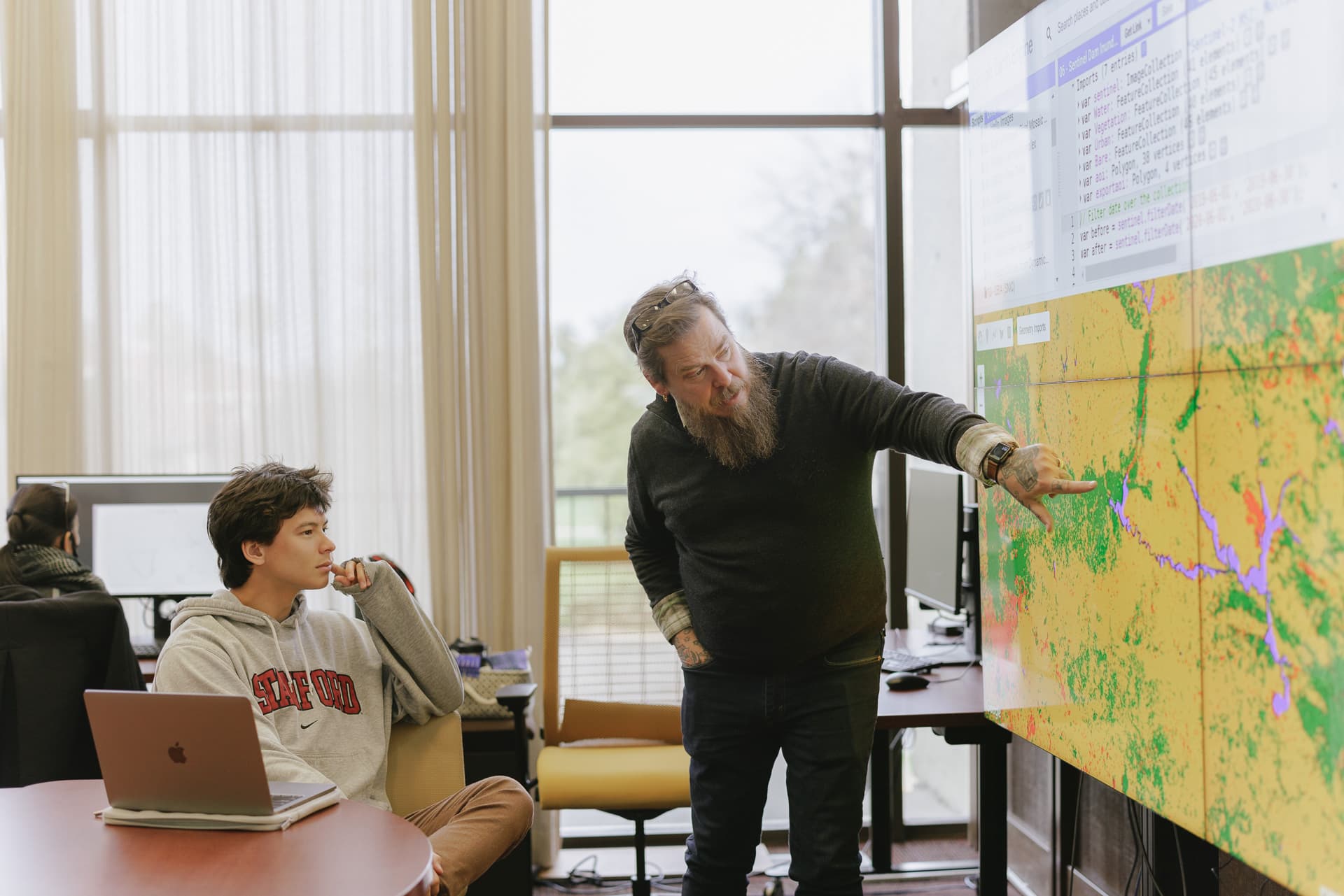 We support the use of spatial data, methods, and technology in research and teaching at Stanford University. The Stanford Geospatial Center (SGC) provides access and support for a wide range of resources, including software like ArcGIS Pro, ArcGIS Online, QGIS, Google Earth Engine, and datasets like Planet.com’s daily image of the Earth. The SGC also maintains spatial-data infrastructure for research, like earthworks.stanford.edu, our spatial-data catalog and locator.stanford.edu, Stanford Libraries' global geocoding service.